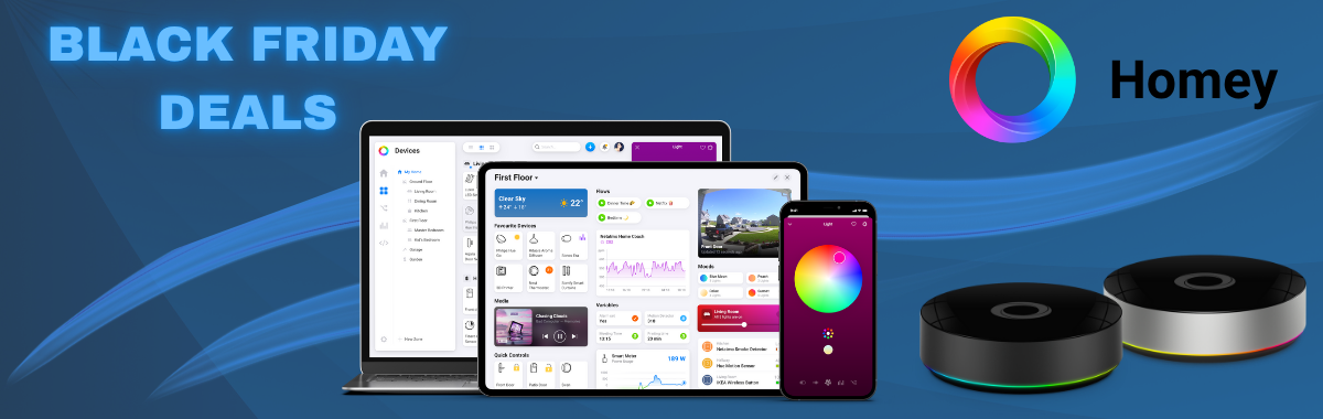 Van 14 november tot en met 1 december 2025 profiteer je van exclusieve Homey Black Friday bundels. Ontdek tijdelijk extra scherpe bundelprijzen* en haal meer uit elke installatie - zolang de voorraad strekt.