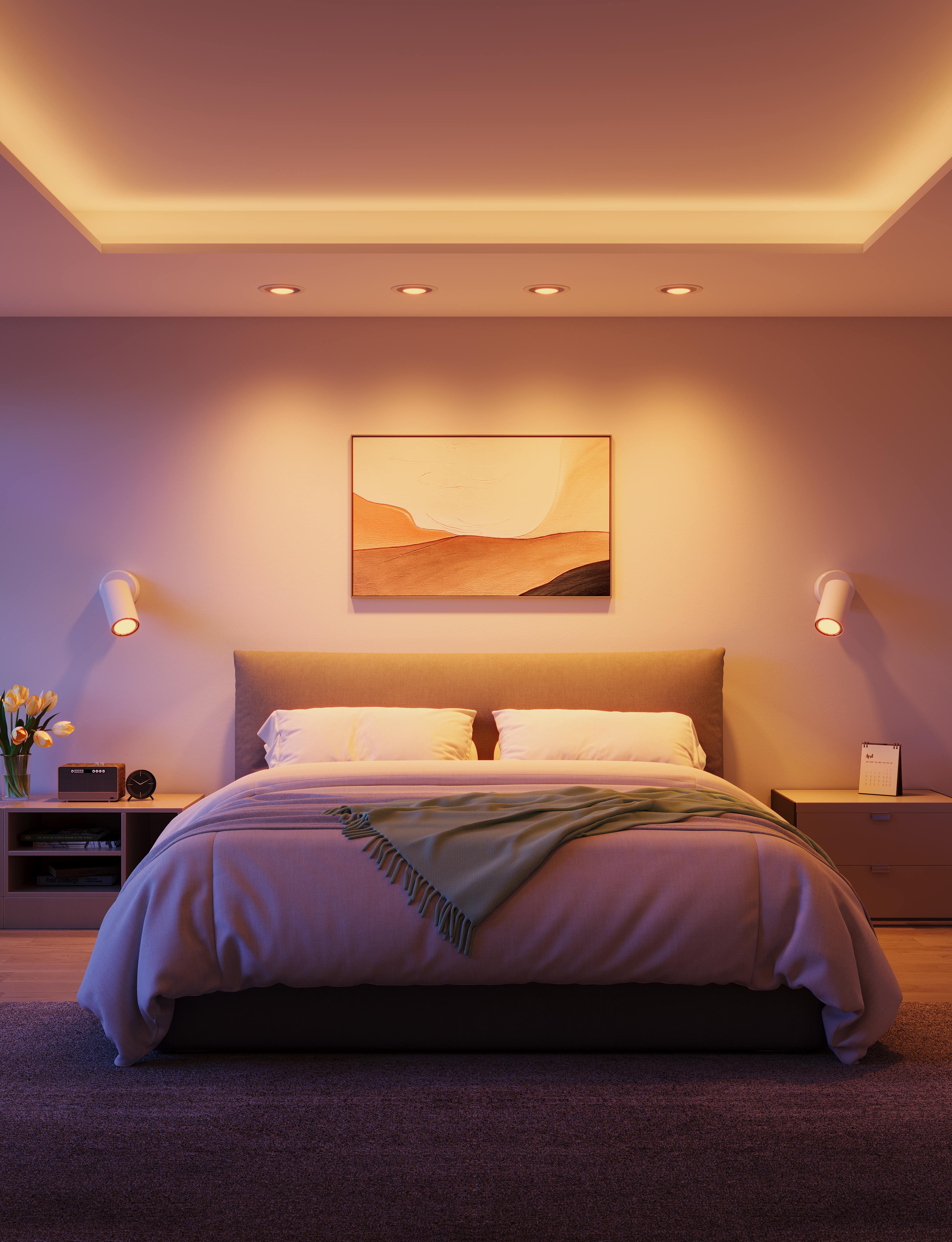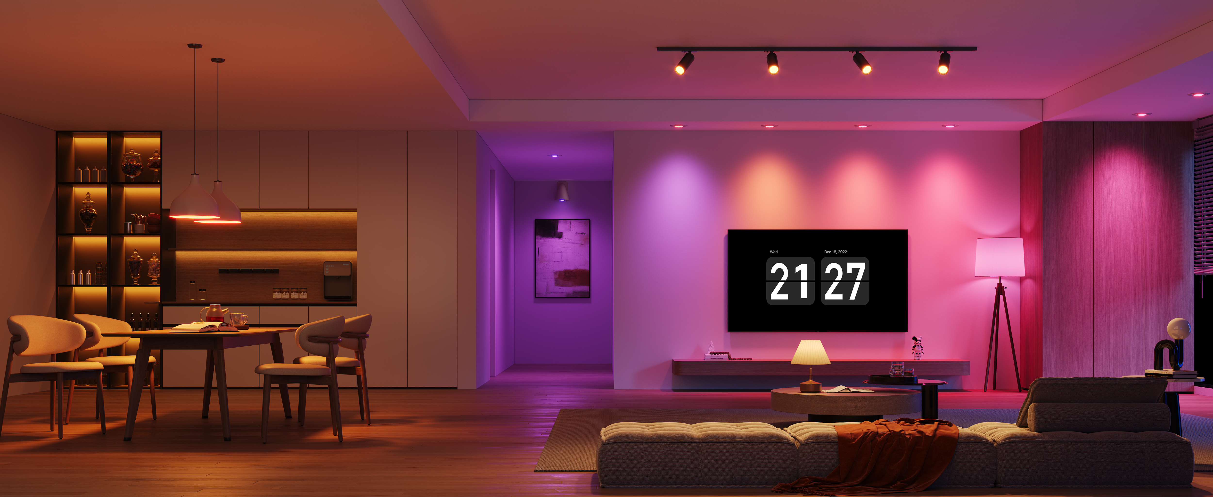 Met scènes en timers wordt de verlichting onderdeel van het dagelijkse ritme. Denk aan automatisch inschakelen in de avond of een vaste lichtinstelling voor werk, eten of rustmomenten.