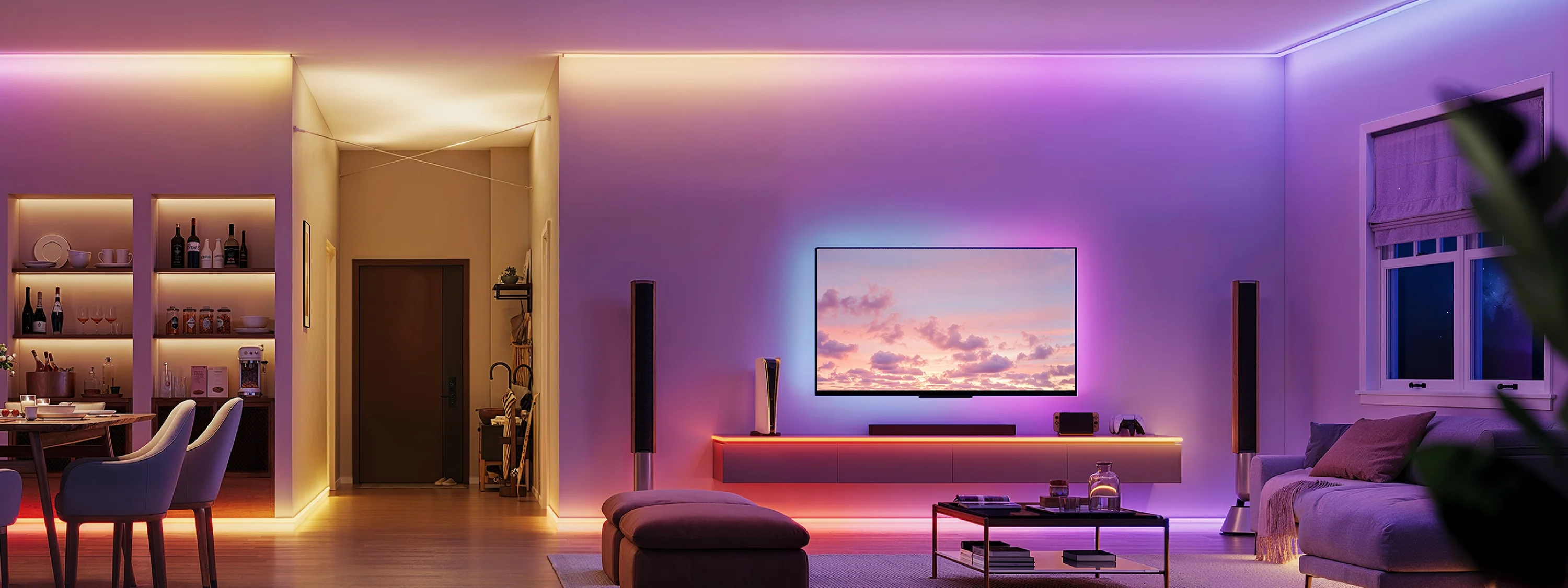 Met scènes en timers worden LED strips onderdeel van het dagelijkse ritme. Denk aan automatisch inschakelen in de avond of een vaste setting voor werk, ontspanning of entertainment.