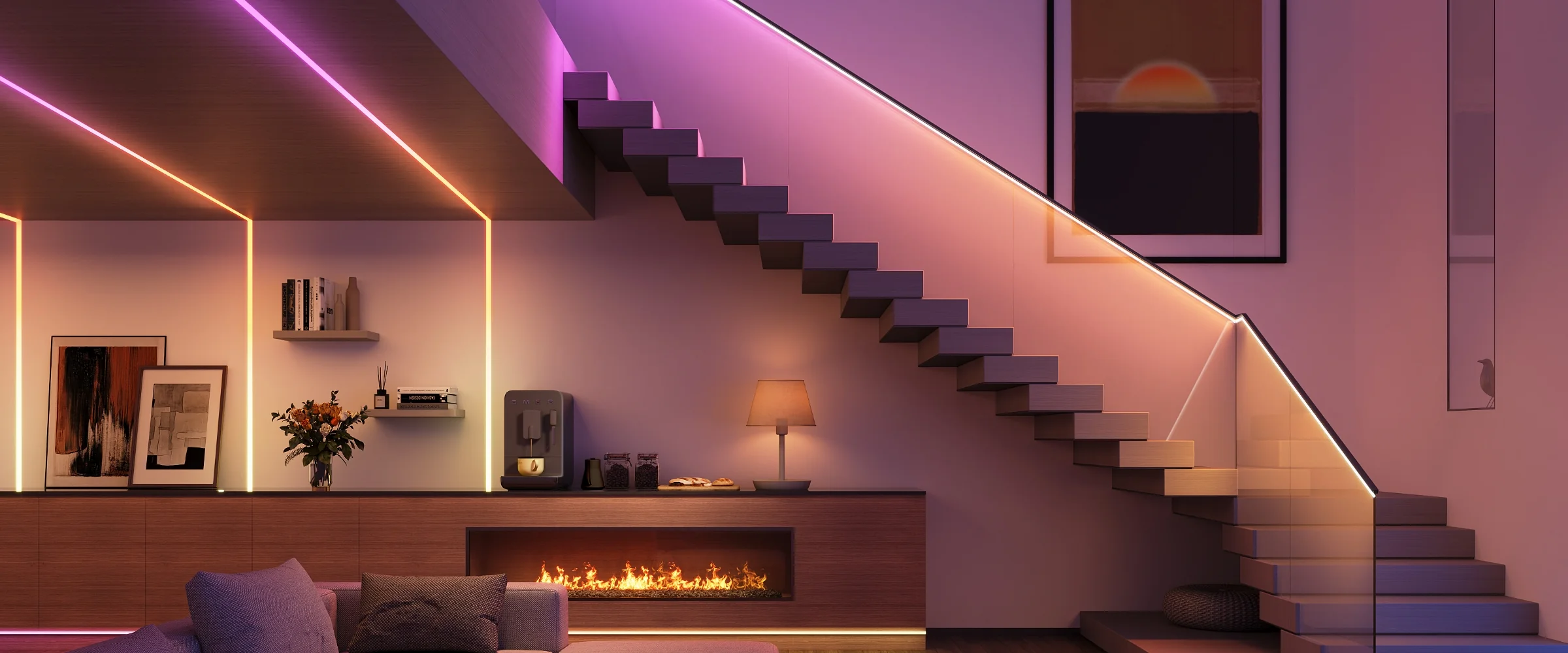 LED strips worden vaak gebruikt om lijnen en contouren in een ruimte te benadrukken. Langs planken, achter meubels of onder kasten zorgen ze voor indirect licht dat de ruimte groter en rustiger kan laten aanvoelen.