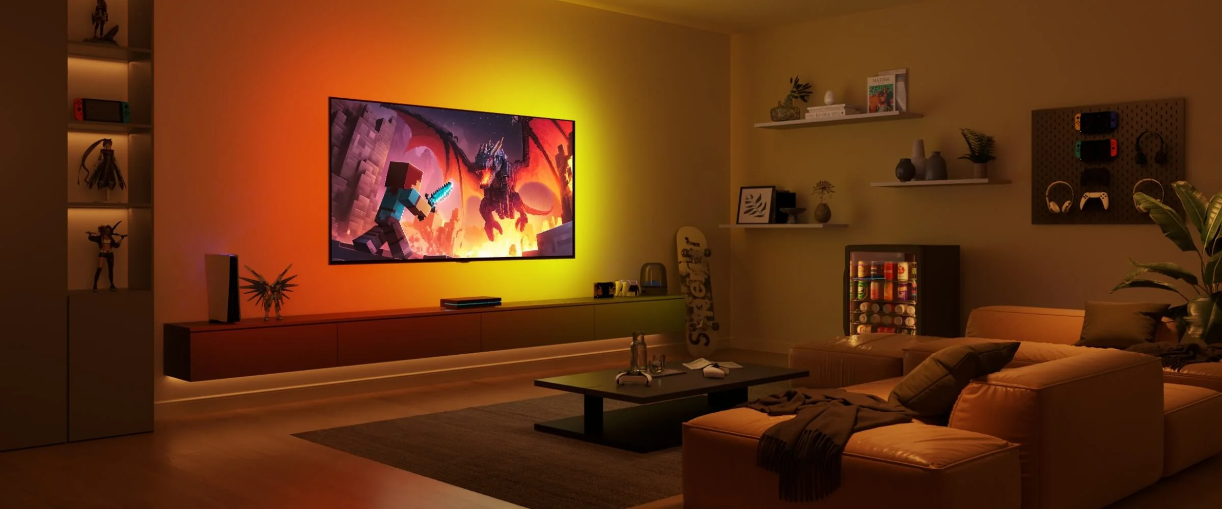 Met HDMI sync box oplossingen wordt de verlichting direct gekoppeld aan de bron van het beeld, zoals een gameconsole of mediaspeler. Het licht volgt daardoor nauwkeurig wat er op het scherm gebeurt, zonder vertraging of interpretatie via camera’s.